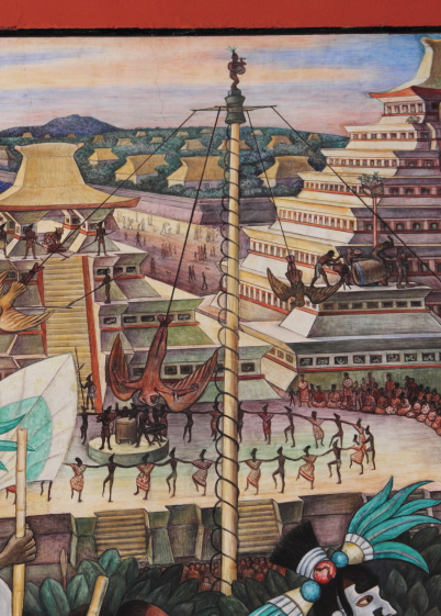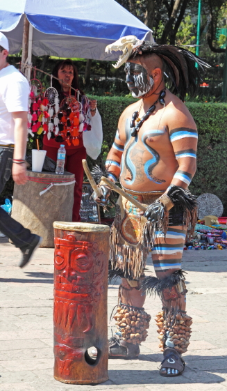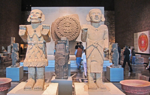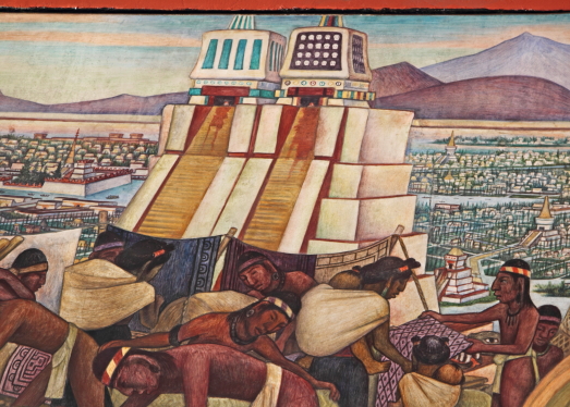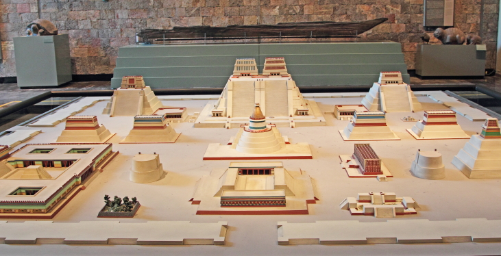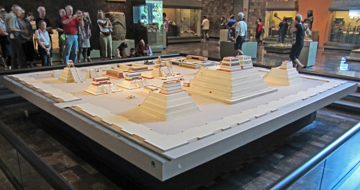 Aztekerne var oprindeligt et halvnomadisk krigerfolk. De ankom i 1200-tallet til Mexicodalen fra det nordvestlige Mexico. En stor del af deres styrke lå i, at de var åbne over for andre folkeslags kultur og tro. I midten af 1400-tallet får Aztekerne kontrol over det centrale Mexico og Mexicodalen, det medfører en vis stabilitet og velstand i området. I 1325 grundlagde Aztekerne byen Tenochtitlán, der hvor centrum af Mexico by nu ligger. |