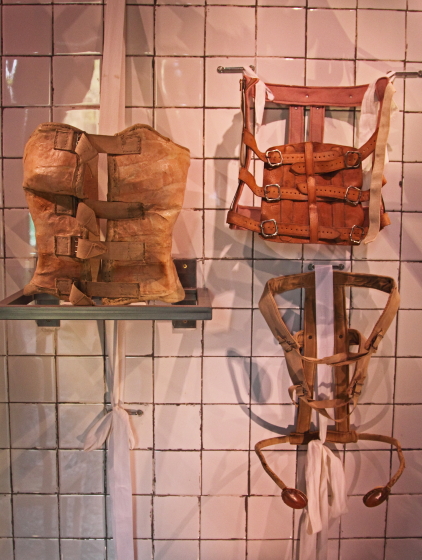 på ryggen i en gipsbandage. Da hun ikke havde