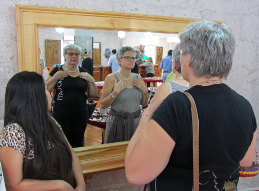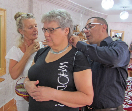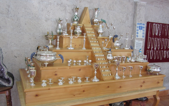 Efter demonstrationen havde vi selvfølgelig mulighed for at købe smykker. Der var et meget stort salgslokale, og de tre af bordene, havde kopier af Spratling smykker. |