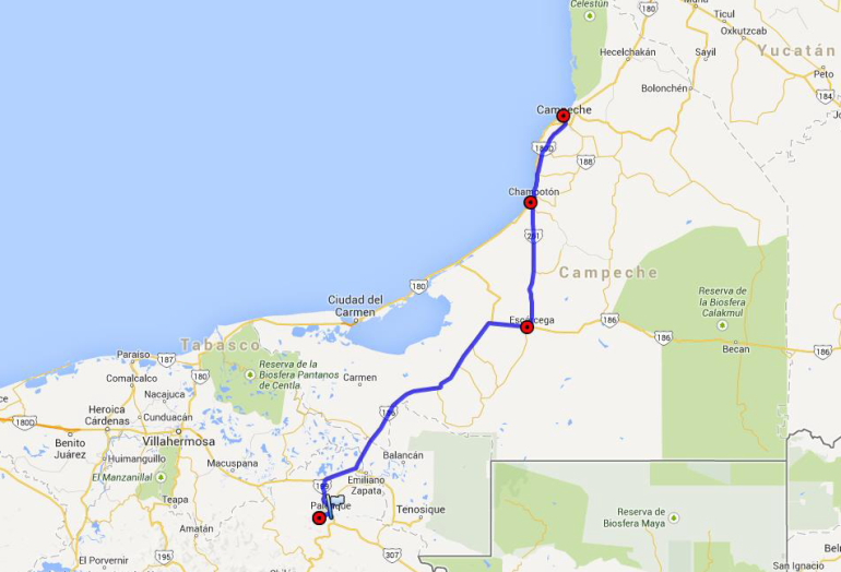I Escárcega holdt vi ind for
