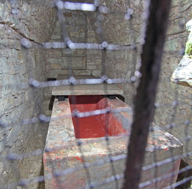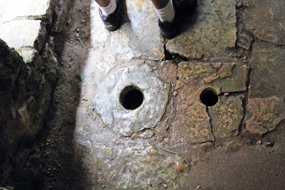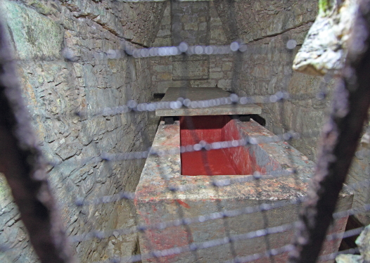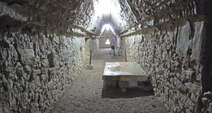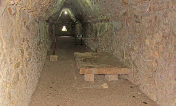 og symboler. Der er en 20 m. lang tunnel ned til