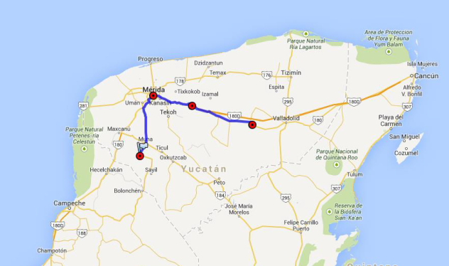 til Mérida, der er hovedstad i delstaten