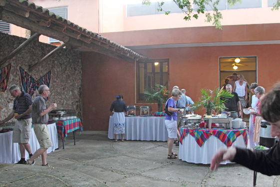 Om aftenen fik vi vores afskedsmiddag, den var samtidig også en kompensation for en ændring af vores værelser på det hotel, vi skulle på dagen efter. Vores værelser med havudsigt, var af hotellet blevet annulleret og ændret til haveudsigt. |