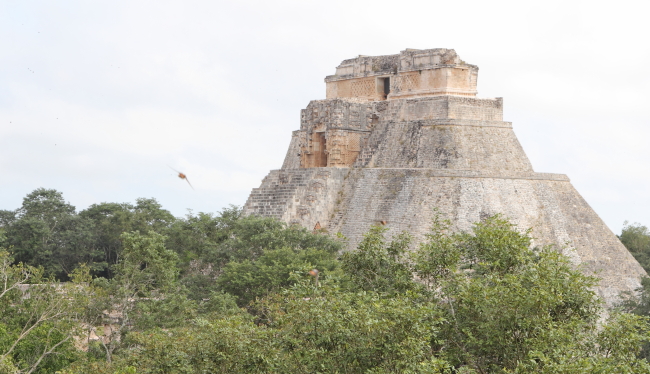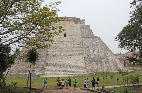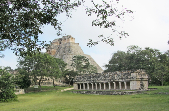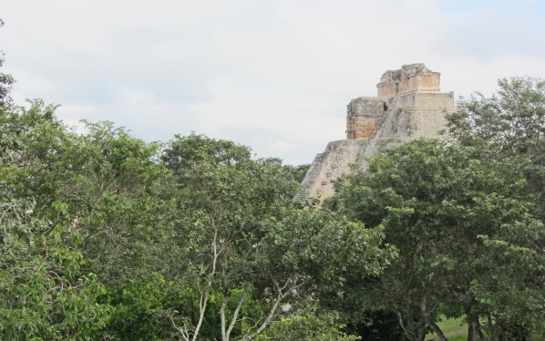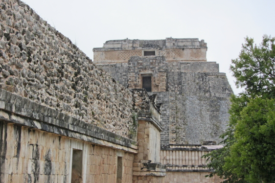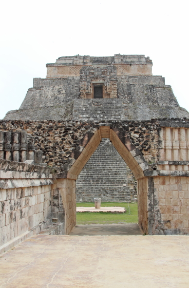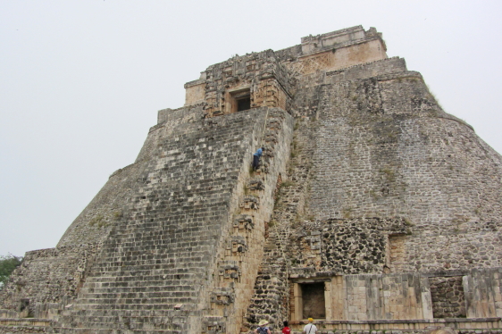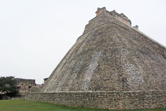 Troldmandens Pyramide på 69 m. er noget helt særligt, den har nemlig afrundede hjørner og er oval. Starten af pyramiden er fra ca. 581. Den er bygget i fem lag over flere hundrede år. Templet på toppen er hjemsted for dværgen af Uxmal. Ifølge mayamyten blev Uxmal grundlagt af en alux (dværg) der havde trodset en lokal konge. Da kongen udfordrede dværgen til at bygge et hus, stod Troldmandens Pyramide der næste morgen. En anden dag byggede dværgen vejen til Kabah. Som sidste udfordring skulle de begge slås i hovedet med en hammer. Kongen døde, men dværgen var beskyttet af en magisk tortilla og blev derefter hersker over Uxmal. |