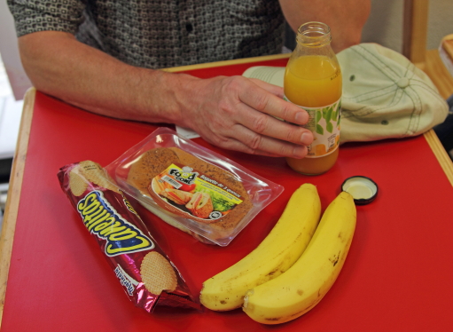 vi købte os en let frokost i en Oxxo. |