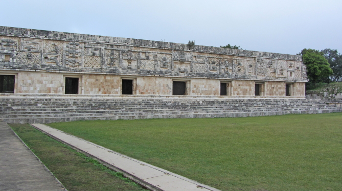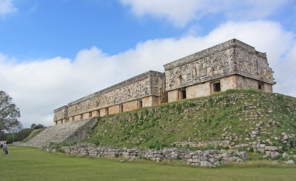 Uxmal betyder ”bygget tre gange”. Det er den mest majestætiske af mayaernes ruinbyer. Ruinbyen var kendt i mange år, men først da den danskfødte Frans Blom kortlagde området i1920-erne, fandt man ud af dens store betydning. |