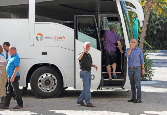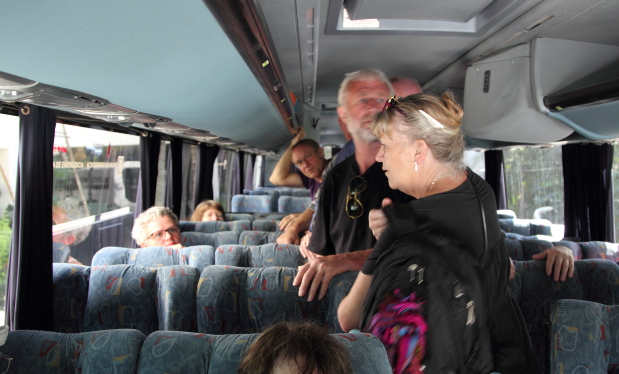 vinke farvel til dem. Deres bus kom dog først