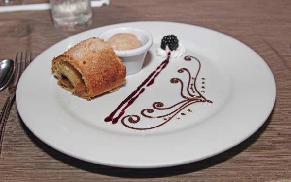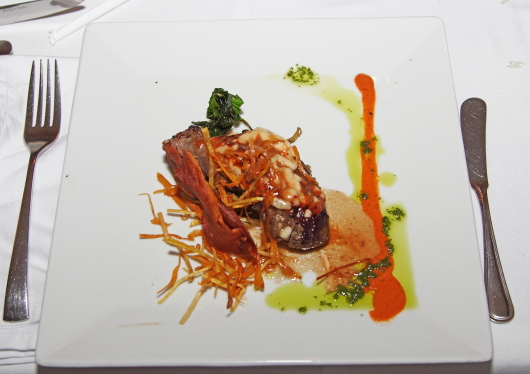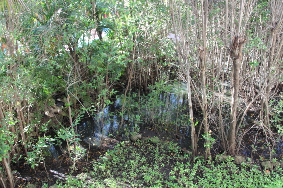 Der var en lille altan, den vendte ud mod et lille vandhul, hvor vi erfarede, at der var myg. |