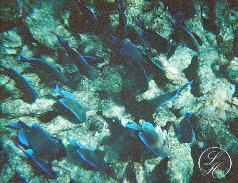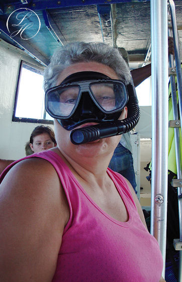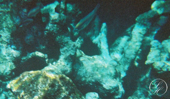 | Thorkild havde et undervands engangskamera med på turen, men det var svært, at være nybegynder, have finner på fødderne for første gang og samtidig fotografere. |