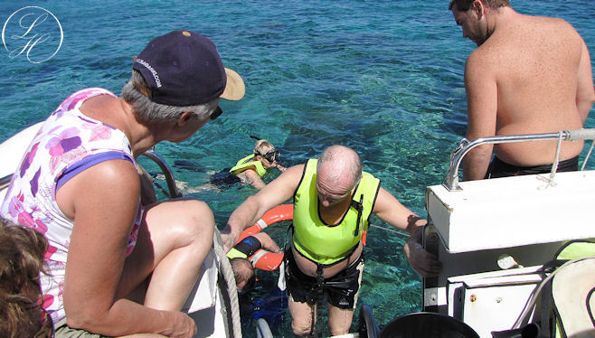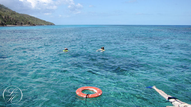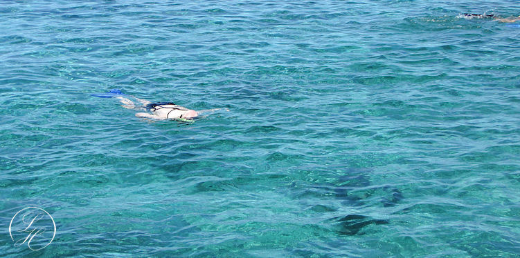 | Vi skulle alle først have en guidet tur rundt, derefter måtte vi snorkle frit to og to. |
