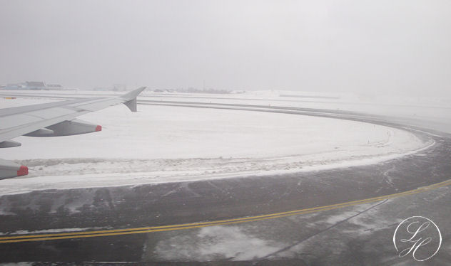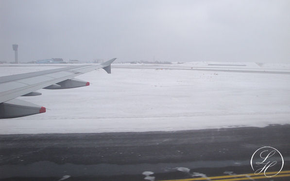 | Da vi skulle fra Heathrow, holdt vi lidt i kø for at komme af sted. |