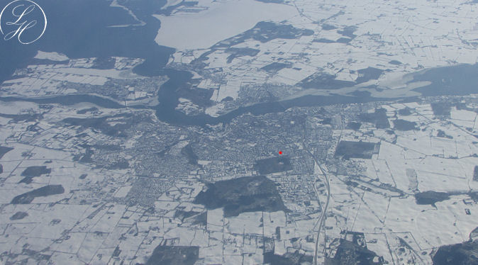 | Vi fløj over det sydlige Fyn og kunne se hjem. |