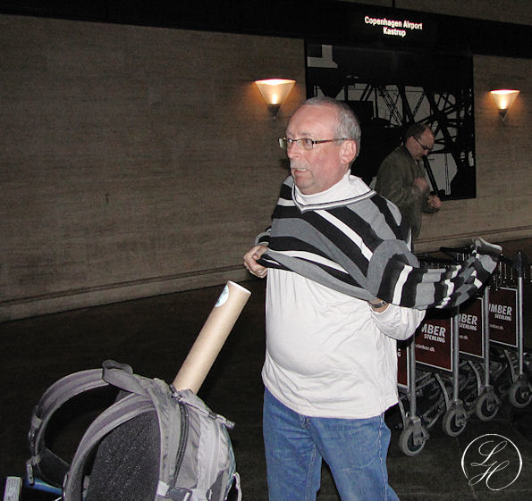| Det var koldt at komme hjem til Danmark, så Thorkild måtte have nogle ekstra lag tøj på. |